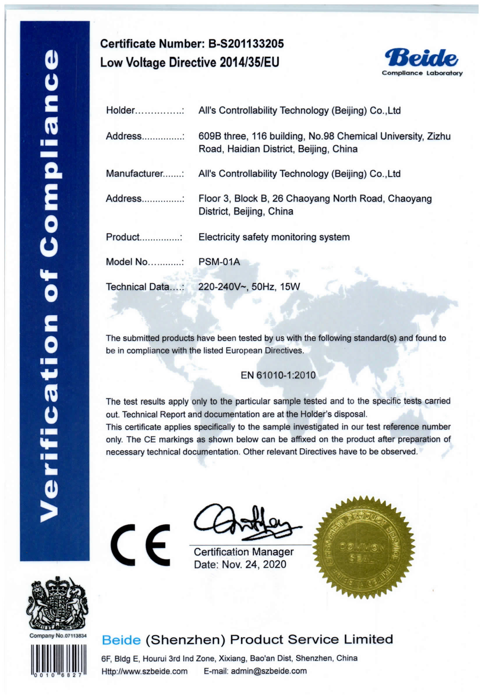 熱烈慶祝我公司“供電安全監(jiān)測系統(tǒng)”獲得CE認證證書