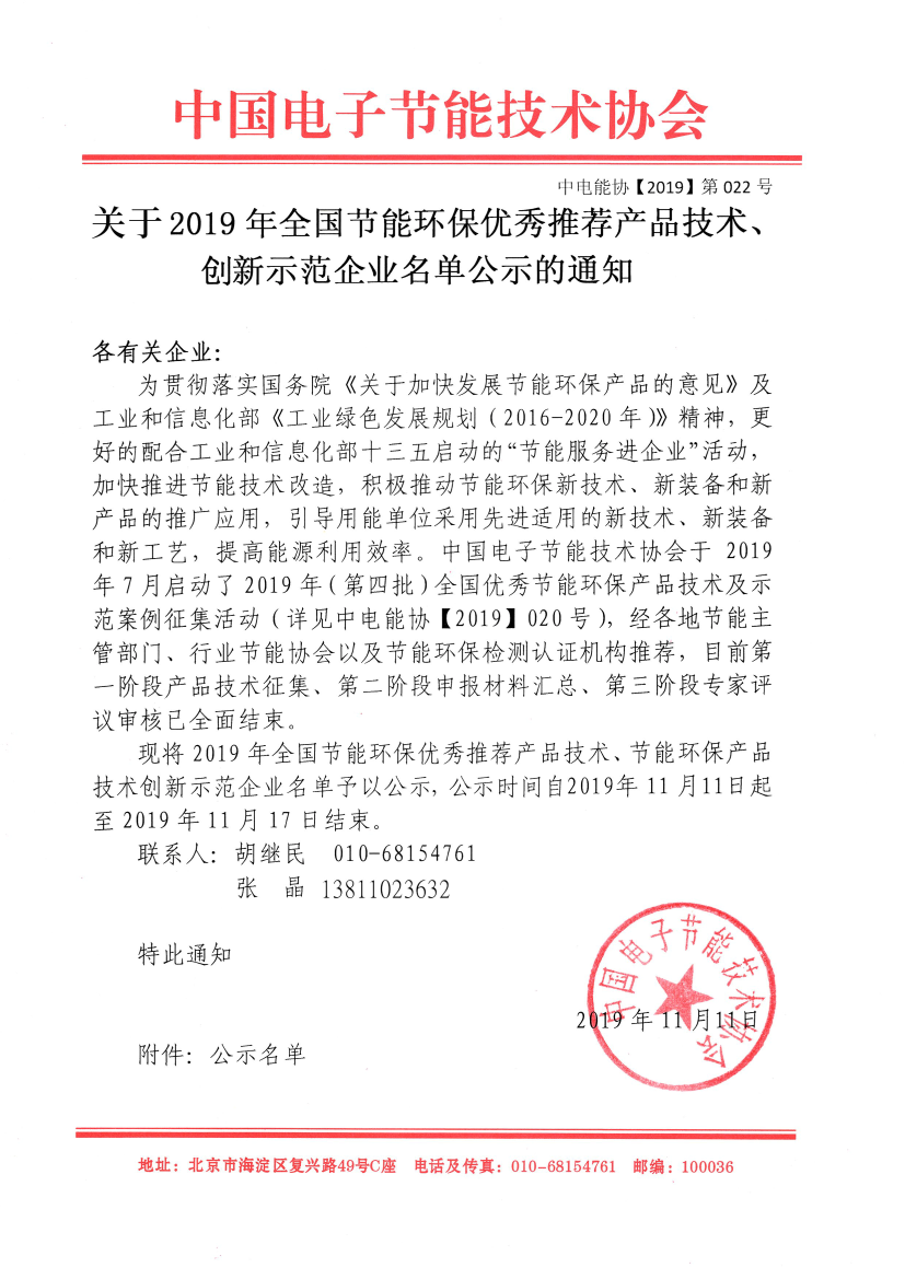 熱烈慶祝我公司“機(jī)房動力監(jiān)測及能源管理系統(tǒng)”被評為2019全國節(jié)能環(huán)保優(yōu)秀產(chǎn)品技術(shù)創(chuàng)新示范企業(yè)